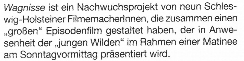 Weblog zum Episodenfilmprojekt 'Wagnisse'